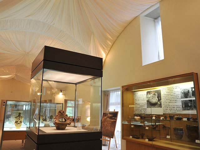 八ヶ岳美術館は八ヶ岳山麓に建つ、豊かな自然に抱かれた高原の美術館。 郷土出身の彫刻家・清水多嘉示の彫刻と絵画、津金寉仙の書をコレクションしています。また原村の位置する八ヶ岳山麓一帯は、遥か古代に縄文文化が華開いた地域でもあります。阿久遺跡をはじめ村内の遺跡から出土した土器や石器などの考古学資料も多数展示しています。このほか年間を通じて様々な企画展やワークショップを開催しています